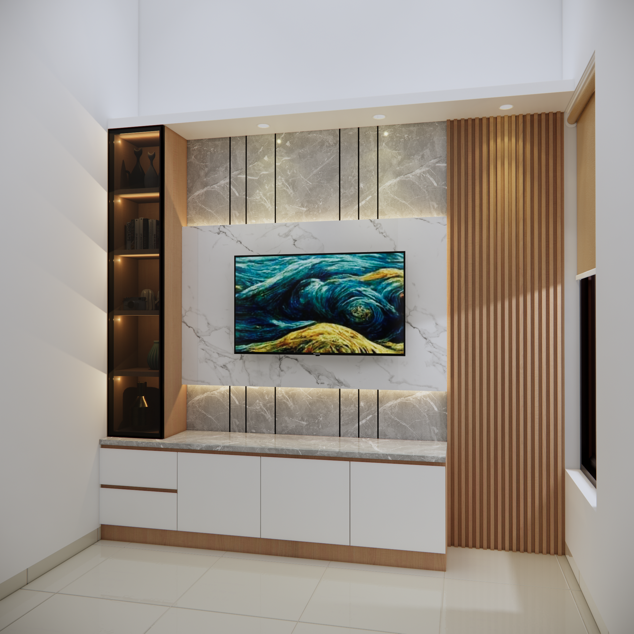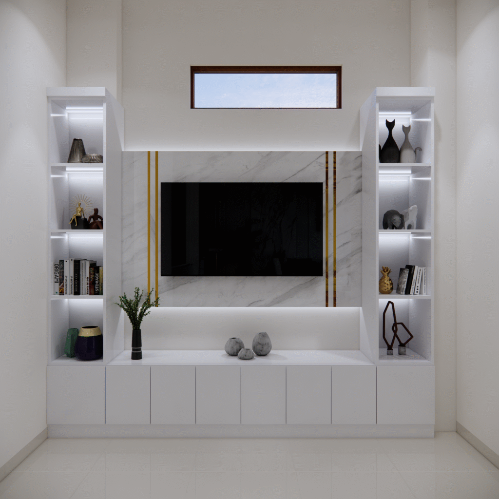 menggunakan material berkualitas seperti HPL, MDF kayu solid atau kombinasi panel dekoratif, backdrop tv tidak hanya mempercantik tampilan, tetapi juga memberikan perlindungan sekaligus menutupi kabel dan perangkat elektronikagar ruangan terlihat lebi tertata, beberapa desain bahkan dilengkapi rak penyimpanan, ambalan hingga pencahayaan LED tersembunyi yang menambah kesan mewah dan modern.