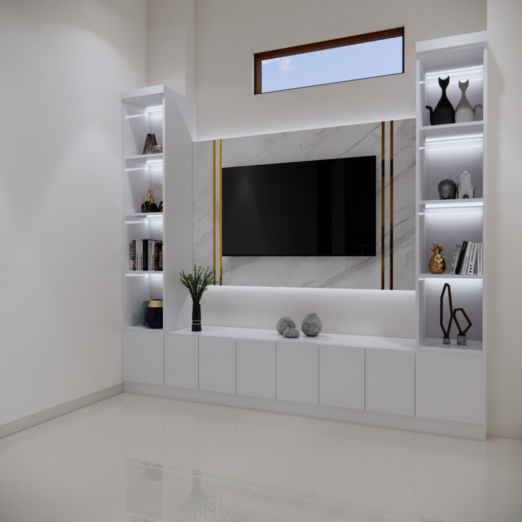 Backdrop TV bukan sekedar pelengkap interior, tetapi elemen desain yang mampu mengubah suasana ruang secara signifikan. dengan tampilan yang elegan dan rapi, backdrop tv berfungsi sebagai pusat perhatian diruang keluarga maupun ruang tamu, menciptakan kesan harmonis antara teknologi dan estetika.